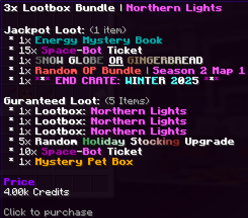 This week we are introducing a brand new Lootbox: Northern Lights alongside of course a 3x Lootbox Bundle & updated Space-Bot Loot table.