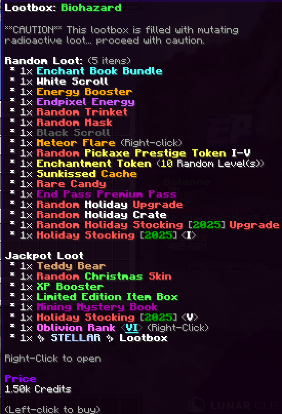 That is all for now! We hope you guys enjoy and look forward to seeing you around EndPixel.