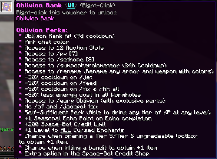 - Oblivion Rank Kit (7d cooldown) View kit here