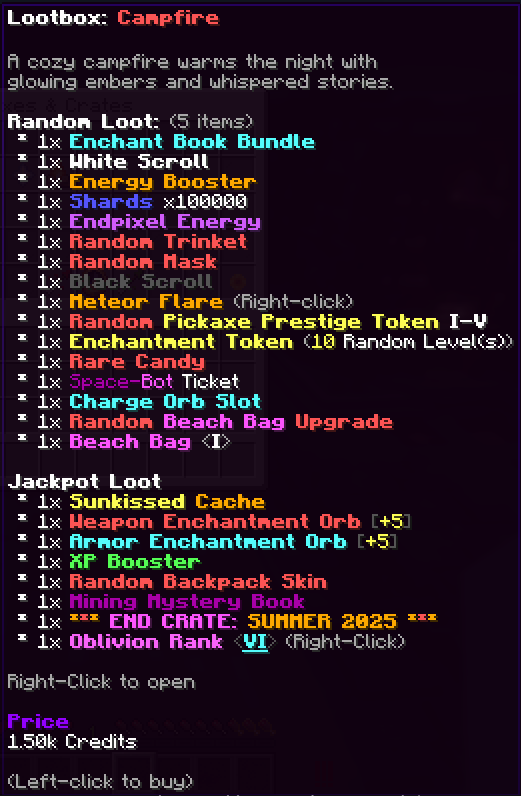 - Lootbox: Campfire // 1,500 Credits