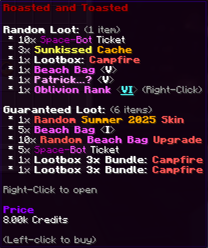 - Roasted & Toasted Lootbox Bundle // 8,000 Credits