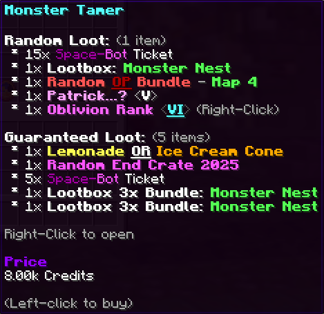 - Lootbox Bundle: Monster Tamer // 8,000 Credits