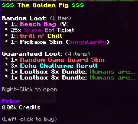 - $$$ The Golden Pig $$$ // 8,000 Credits