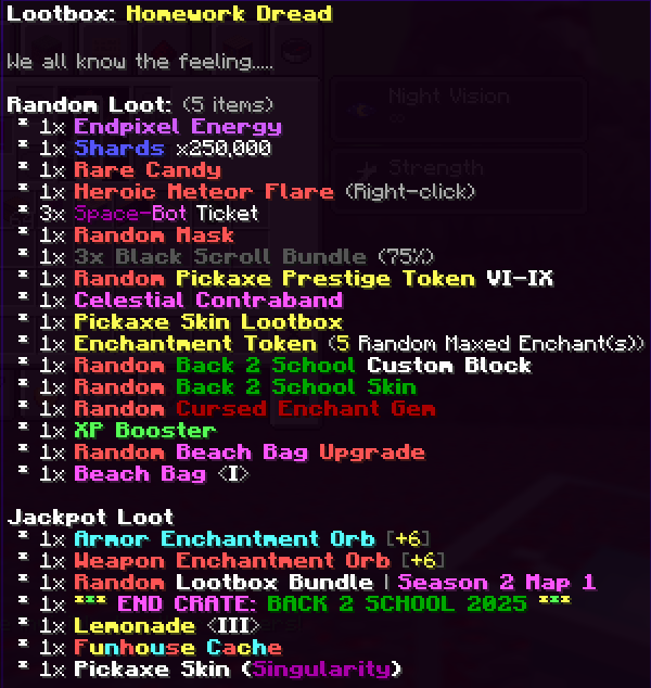 - 2x Lootbox: "Homework Dread"